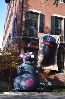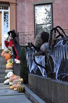 The Sunday we chose to visit Beacon Hill happened to be the busiest I’ve ever seen Boston so far. We took the Green Line (E) over to Copley, and the train was so packed I thought I might fall out the door. Before hunting for Halloween decorations, we bounced from a tiny, hectic little coffee shop called the Thinking Cup to an outdoor used book sale, where I purchased a copy of The Satyricon (late 1st century CE) for 50 cents. It was a perfect day to be outside. The weather was gorgeous, the trees were turning colors, and the woman at Nino’s Pizza on Charles Street let me buy a slice of pepperoni pizza for $4 when it was supposed to be $5. My award for most impressive Halloween decoration goes to the Toy Story house!